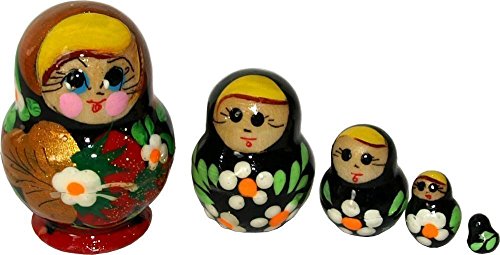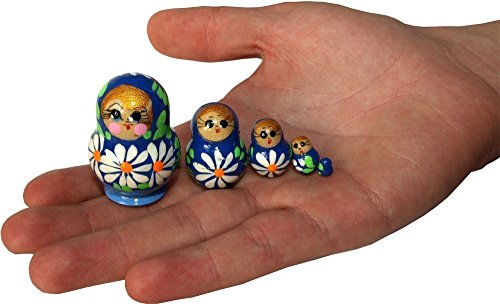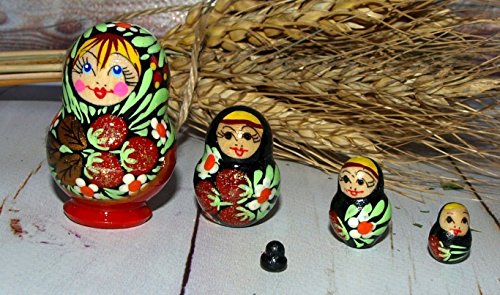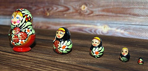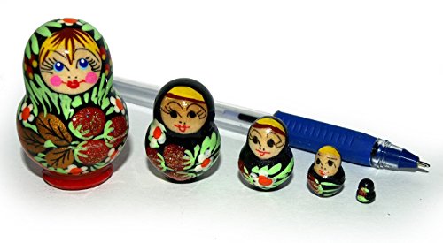 Title : Matryoshka Micro-dolls - 5 pc set - Stacking Toy Souvenir - Handmade Doll - Wooden Nesting Doll - Just 1.18" Tall - In a Jute Sack - Each Item Unique