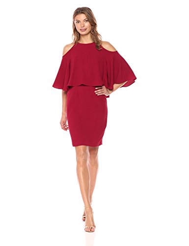 Adrianna Papell Women's Textured Crepe Cold Shoulder Sheath, Cranberry, 4