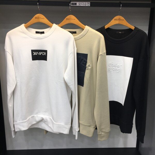 엠보 레터링 포인트가 특이한 맨투맨입니다^^멋스러워요~~~^^90사이즈는 오버핏으로나옵니다.상품문의시 매장으로연락주세요.