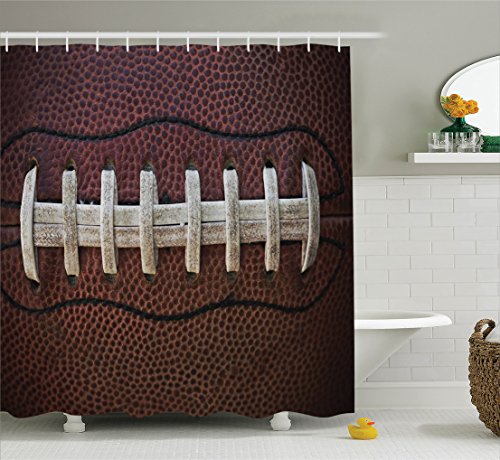 Ambesonne Sports Decor Collection, American Football Themed Fun Traditional Sport Close Up Photo Pattern, Polyester Fabric Bathroom Shower Curtain Set with Hooks, Ivory Black Dark Brown