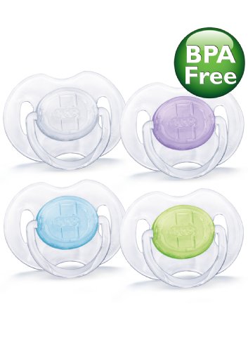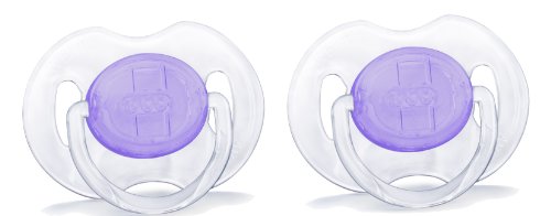 Orthodontic symmetrical collapsible nipple so right side up or upside down, Philips advent pacifiers help ensure natural development of teeth and gums, Taste and odor-free silicone nipple makes for an easy transition between pacifier, breast and bottle, Includes two pacifiers, ideal age range: 0-6 months, WARNING: Do not tie pacifier around child's neck as it presents a strangulation danger, Colors may vary, you may receive in one of the following colors: green, blue, clear or purple