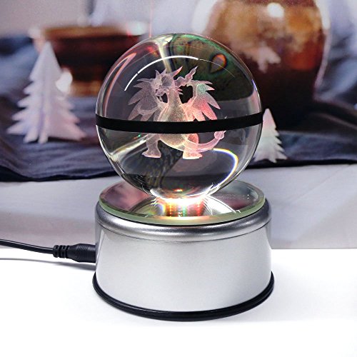 3D Crystal Ball Fancy LED Lighting and Spinning Primary Base Advance 3D Laser Engraving Valentine Children's Gift (Charizard)