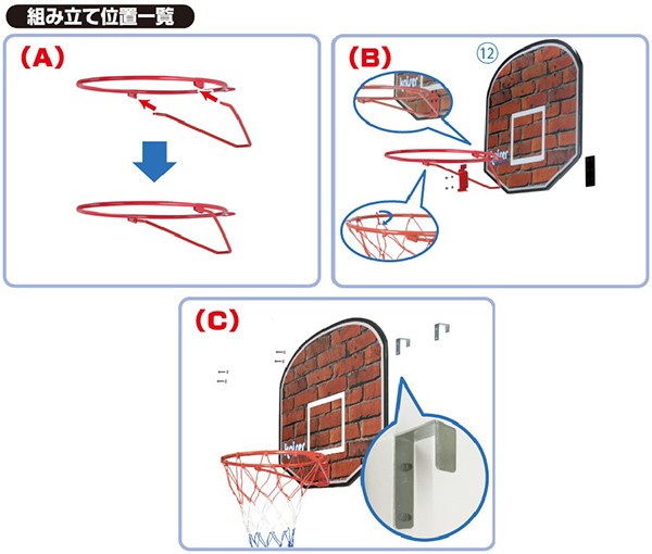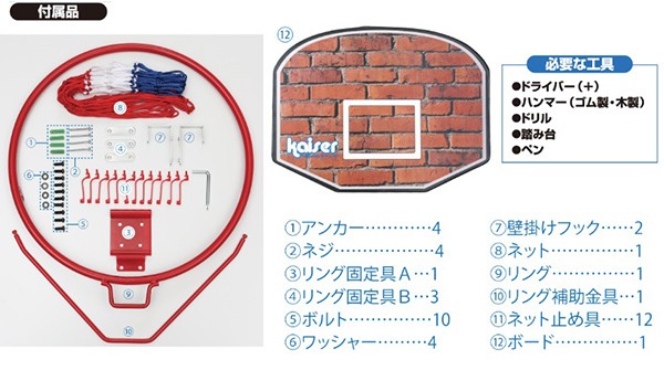 | 仕様 | 組立式 リング内径:約42cm(バスケットボール7号対応) ボードサイズ:約800×600mm リング折りたたみ可 |