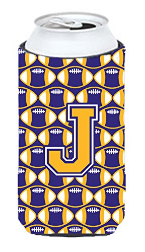 Letter J Football Purple and Gold Tall Boy Beverage Insulator Hugger CJ1064-JTBC