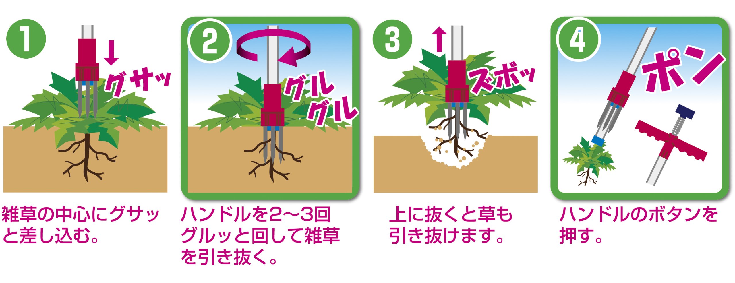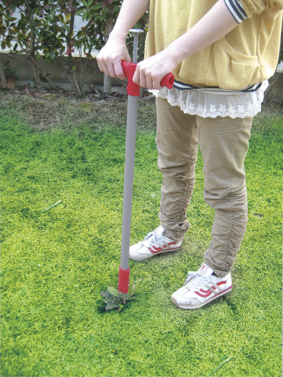 1 Standing, weeds go out → waist is comfortable.