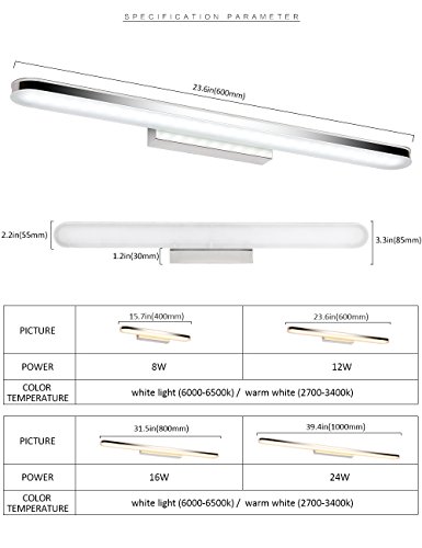 LED Bathroom Vanity Lighting Fixtures Long Shade Stainless Steel Bath Mirror Lamps WaLL Lights