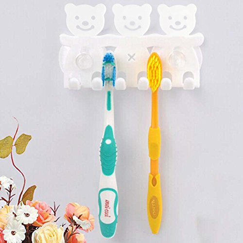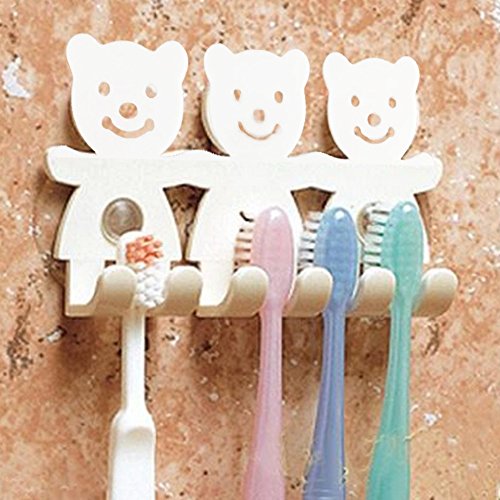 Toothbrush Holder, [White] 3 Bears Wall Mount Hanger- Holds 3 Toothbrushes & Suctions to the Mirror!