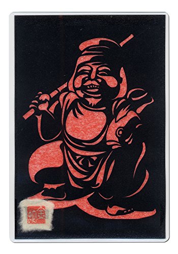 Cutout picture Japanese art collage KIRIE “Seven Lucky God · Ebisu” Seven Deities(Gods) of Good Fortune Made by Washi(Japanese paper) Scarlet, 4” x 6”