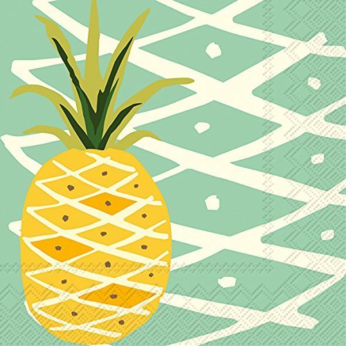 Ideal Home Range C012640 20 Count Teal Tropical Pineapple 3-Ply Paper Cocktail Napkins, Multicolor