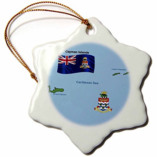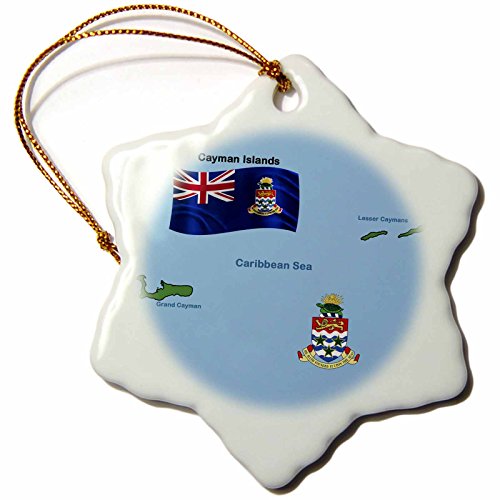 3dRose orn_47679_1 Flag and Map of Cayman Islands Shoeing Both Grand Cayman and Lesser Caymans Snowflake Porcelain Ornament, 3-Inch