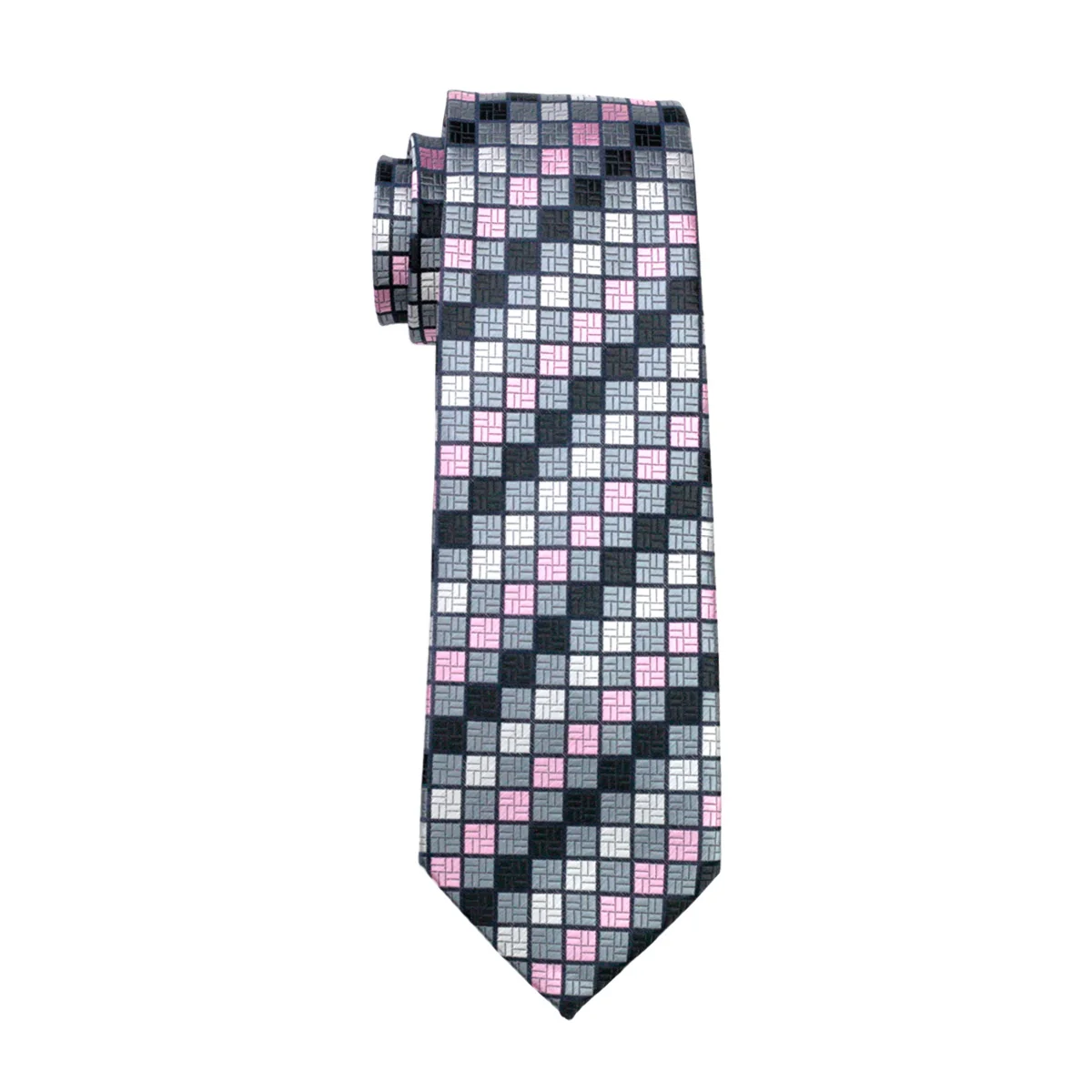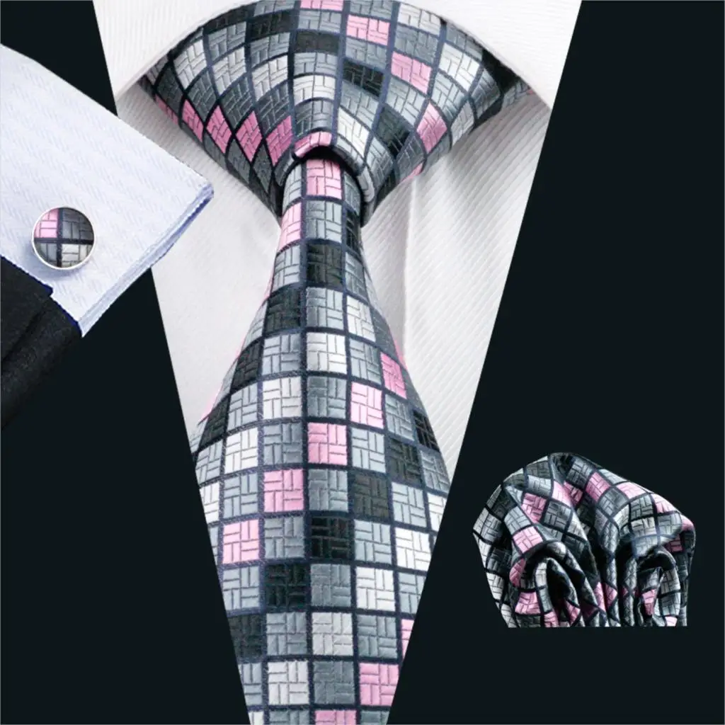 | [해외]FA-482 신사 넥타이 블랙 격자 무늬 100% 실크 자카드 넥타이 손수건 커프스 세트 비즈니스 웨딩 파티 넥타이 무료 배송 |