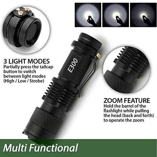 EcoGear FX Bright Mini Tactical LED Flashlight (E300): Perfect for Security, Tactical and General Use - Zoom Function and 3 Light Modes