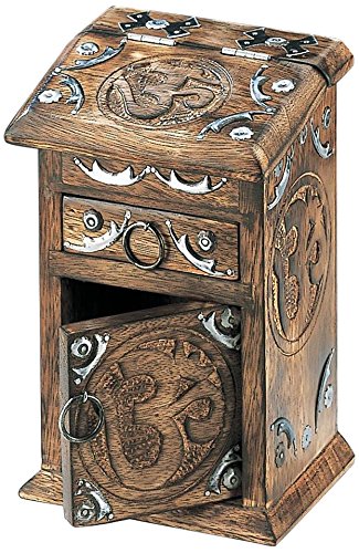 StealStreet SS-IA-WB404 8.5 inch Hand Carved Wood Om Box with a Drawer