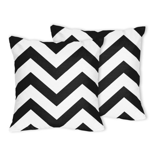 Sweet Jojo Designs 2-Piece Black and White Chevron Zig Zag Decorative Accent Throw Pillow