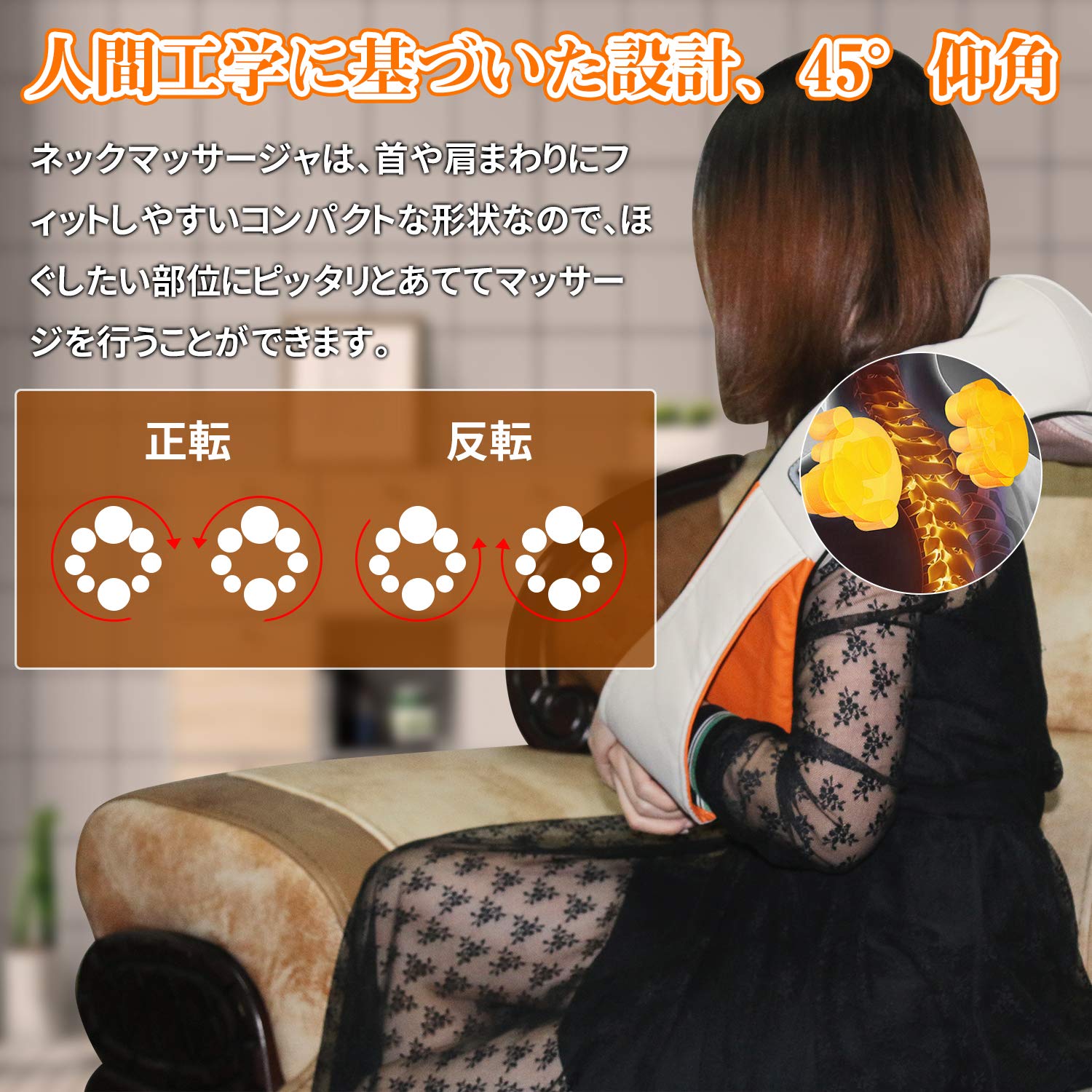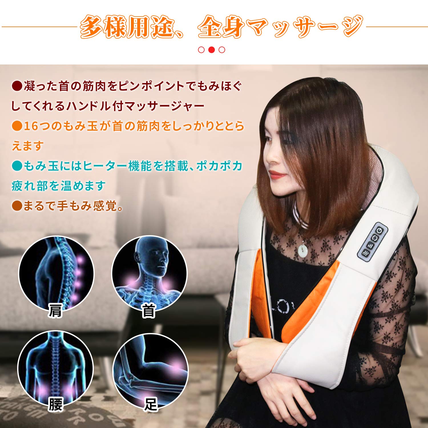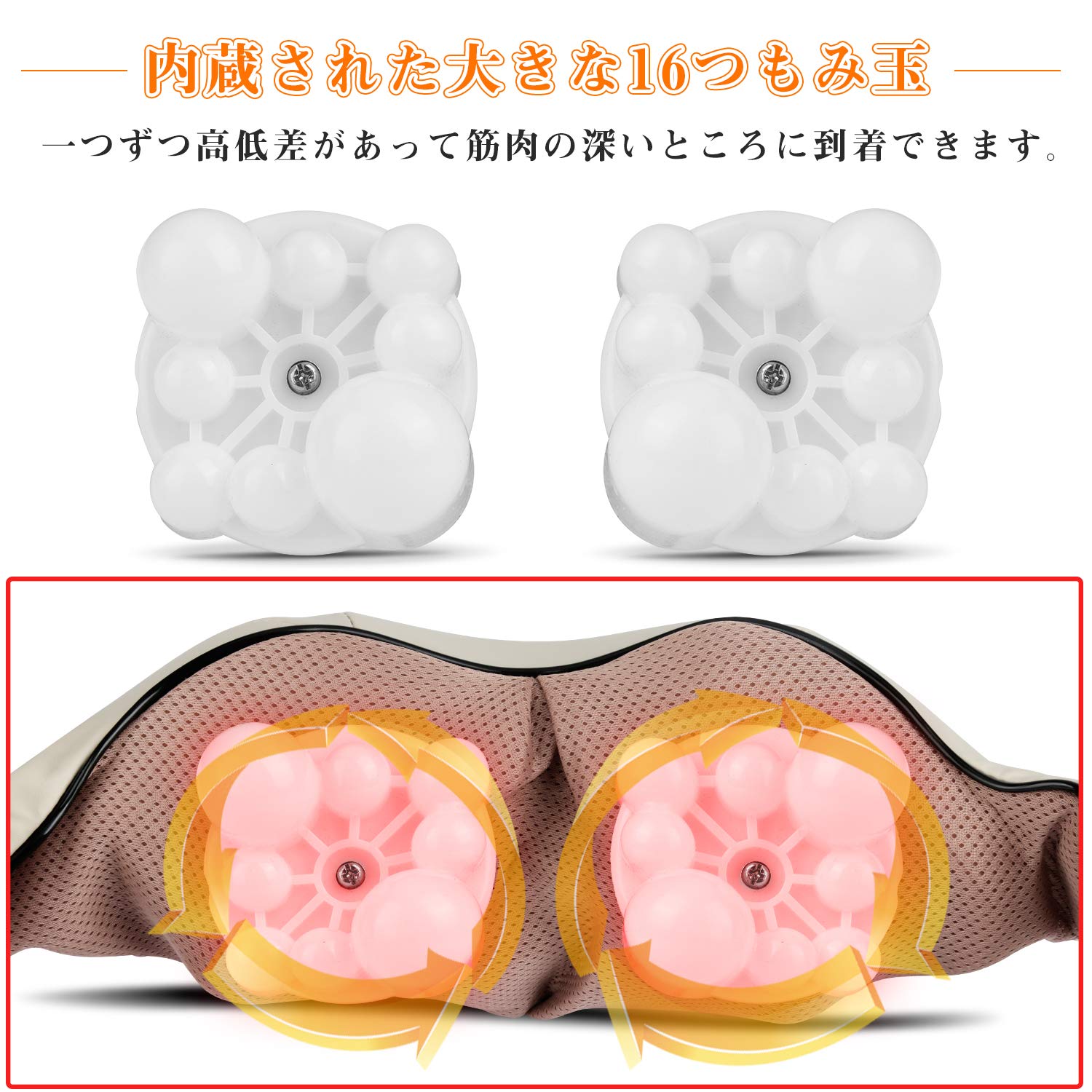■【首・肩の凝りを解消する】内蔵された大きなもみ玉が16個あって、一つずつ高低差があって筋肉の深いところに到着できます。首や肩まわりにフィットしやすいコンパクトな形状なので、ほぐしたい部位にピッタリしてマッサージを行えます。首だけではなく、「腰」や「腕」「ふくらはぎ」など挟んでもむ場所であればどこでもマッサージできます。