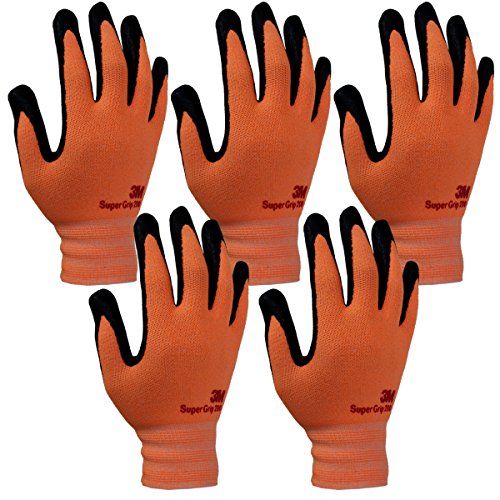 3M Super Grip 200 Nitrile Gardening Work Gloves- 5 Pairs (Large, Orange)