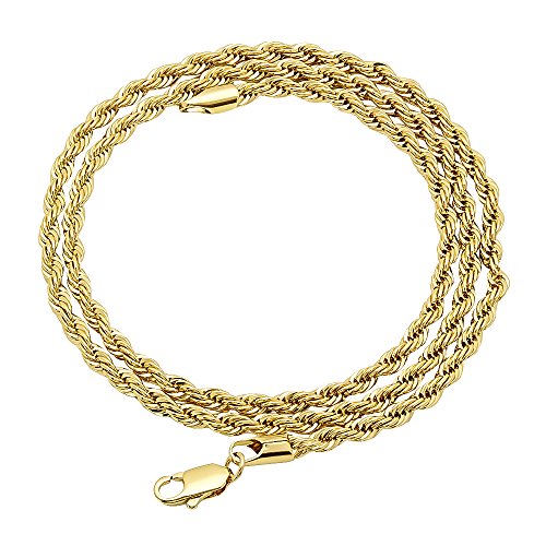 POLISHED & DURABLE - This 14k gold plated 24 inch rope necklace is 3.5mm wide (3.5mm thick) that fastens with a sturdy lobster clasp creating a luxurious experience of a traditional solid gold chain