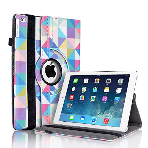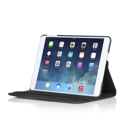 This 360 degree rotating case cover with stand is perfect fit for your Apple iPad Air 2, it provides full access to all its functions. Pairing an executive appearance with seamless functionality, the 360 degree rotating case cover provides an attractive and functional way to carry and protect your iPad Air 2, the users can easily choose the suitable angle they like to view and type, Landscape for watching media, and slightly gradiant angle for easy typing.