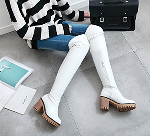 Binding : Apparel Product Description Winter is coming! Do you want a pair of boots both of fashion and warm? This pair of boots is a perfect choice. This lovely shoes features pull on closure and round toe. With their buckle in the upper, you will look more elegant and cute. The comfy plush will warm you all winter. The sole is made of good rubber. You will feel comfortable in their soft bottom. The heels measure 3.1 inches. You will feel comfortable in their mid block heels. Its platform is about 1 inch. So you will not feel tired even walking all day long. They are of high quality and durable. Just pick them to show your beauty. 0