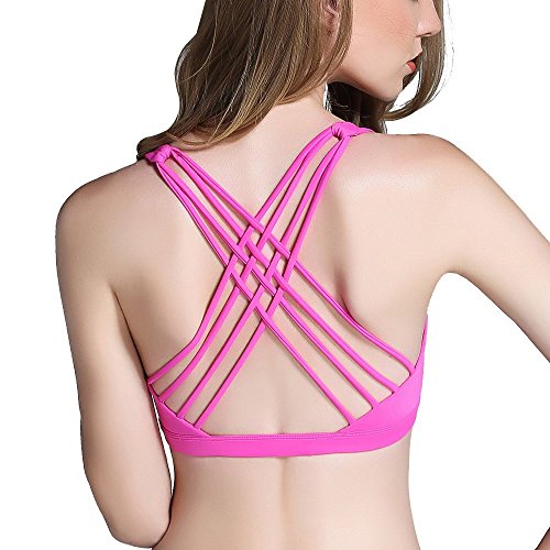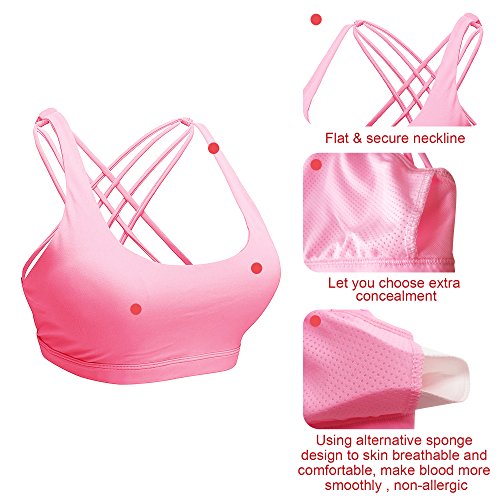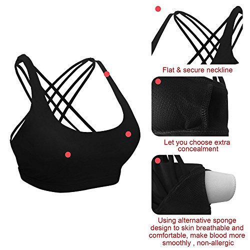 -. Feature : ❤90%Polyamide, 10% Spandex. Chafe resistant, moisture wicking, quick drying, four-way stretch, Soft touch fabrics. / ❤Strappy Back Bralette & Criss Cross Open Back -- Sports Bra with a stylish design to provide a modest supports for yoga and fitness activities. Movable strap design let you enjoy sports every moment, and do not feel inconvenient. / ❤Medium Support & Removable Padding Bra -- Intended to provide Medium support for a A/B/C/D cup. The padded bralette use moisture wicking light-weight sponge pad cups. Featured hidden small opening on both sides, convenient for removal and cleaning. / ❤Lined Wireless Sports Bra -- Wirefree design make you feel no bondage when exercise. Breathable Mesh Inner Lining keeps the air flowing and quick-drying. / ❤Camellias Mid support Padded Sports Bra Top for versatile activities like yoga, pilates, jogging, walking, running, biking, boxing, bowling, tennis, dance, fitness classes, gym workout, or daily use.