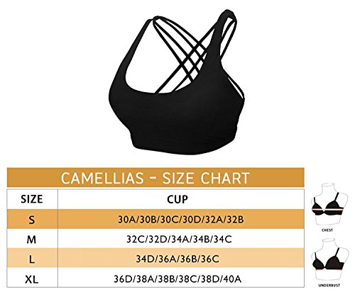 -. Title : Camellias Womens Sports Bra Padded Medium Support Criss Cross Back Yoga Sport Bras with Removable Cups