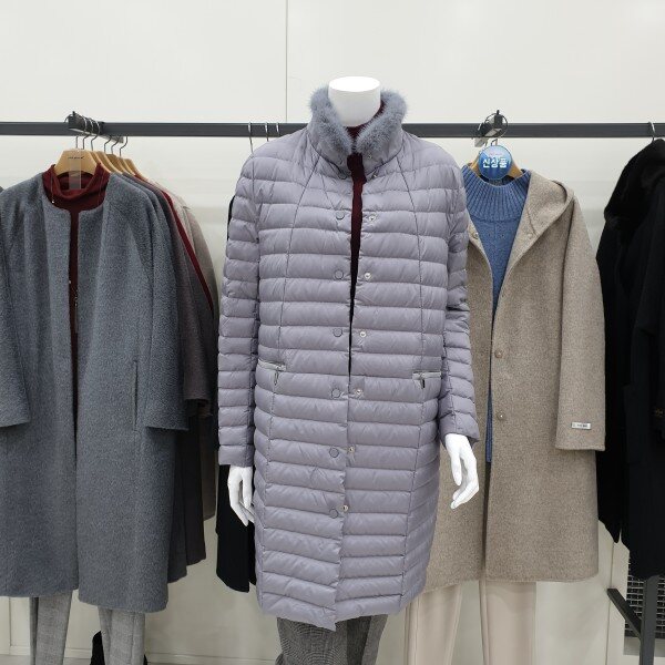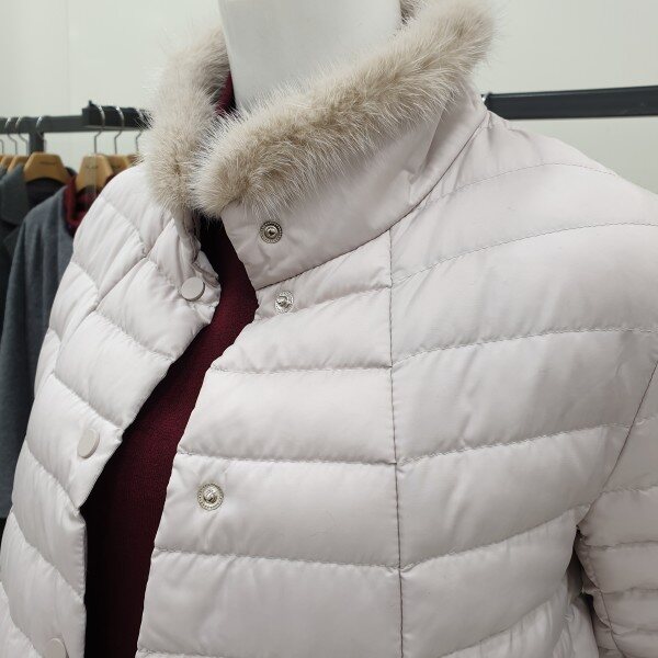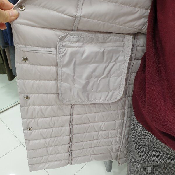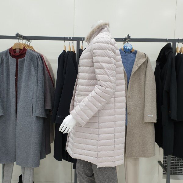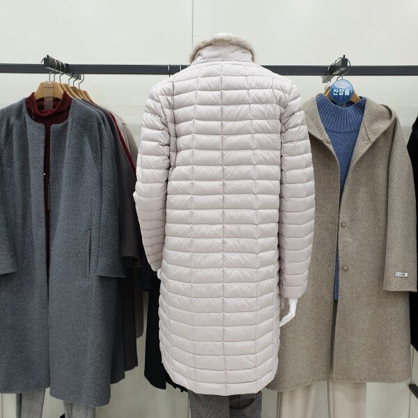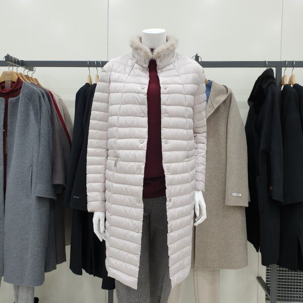목부분 밍크, 초경량 구스패딩입니다.허리라인이 없는 A라인으로 편하게 착용할수 있어요.밝은 색감입니다