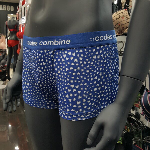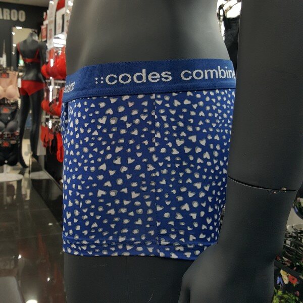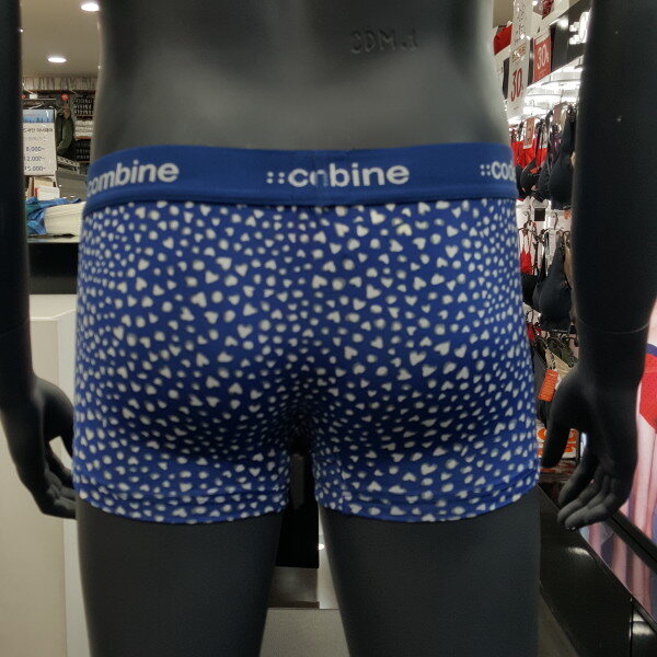 네이비 블루 색상에 하트 패턴으로 디자인된 남성 드로즈 입니다. 원단이 부드럽고 편안한 착용감을주는 상품입니다.