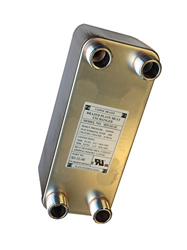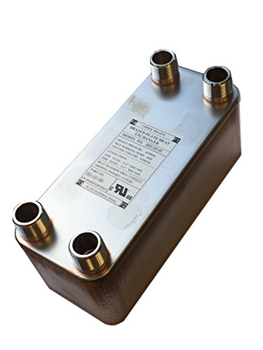 Brazed Plate Heat Exchanger, 5x12- 20 Plate Water to Water Heat Exchanger 40,000 BTU 1" MPT B3-32-20