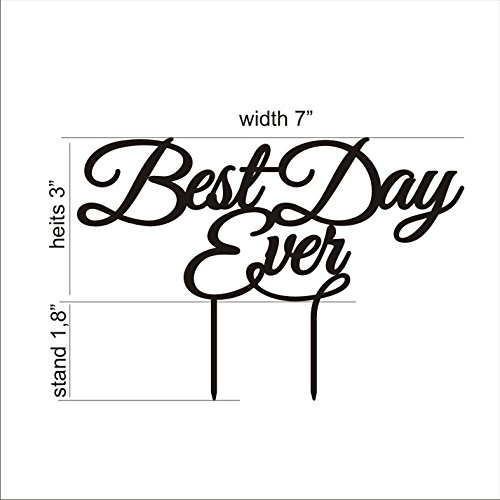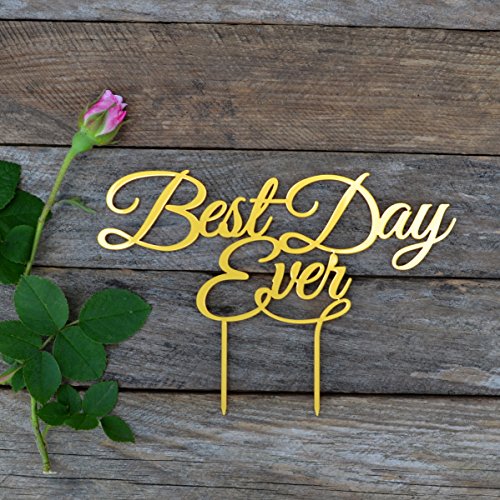 Wedding Cake topper Best day ever Cake Toppers for Wedding Acrylic Cake Decorations HappyPlywood (width 7", gold)