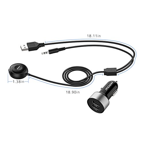 Mpow Bluetooth 4.1 Receiver with Built-in Noise Isolator, Hands-Free Car Kits & Bluetooth Audio Adapter with Dual USB Car Charger & Magnetic Mounting Base for Car Audio System (G-3)