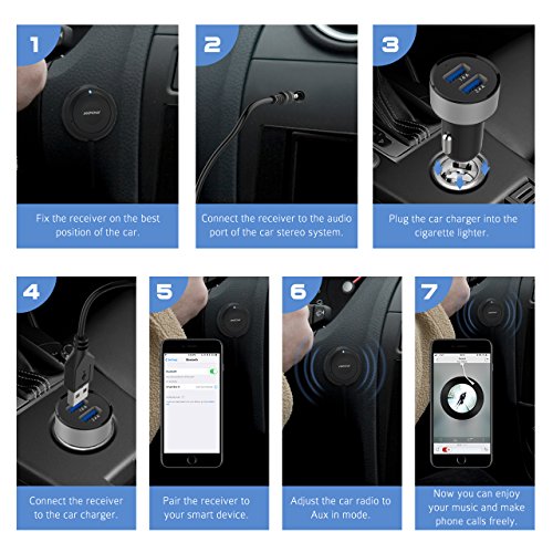 HIGH-PERFORMANCE CAR CHARGER: Equipped with 2 USB charging port: 1A output is recommended for charging the receiver and the 2.4A output for other devices like ipad, phones. Also, it can charge your iPad at full speed.
