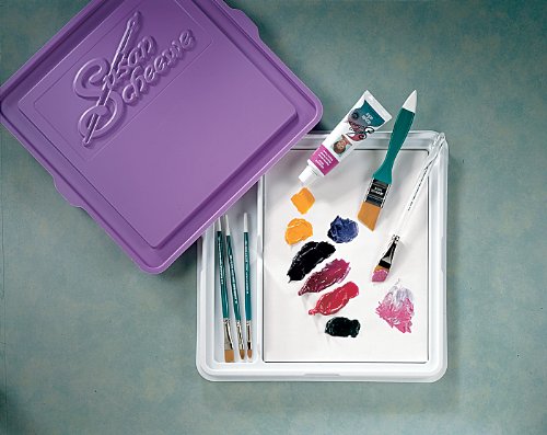 -. Feature : Retains moisture and prevents acrylics from drying out quickly / Keeps paint fresh and workable for about 2 days / Perfect for travel, classes, home or studio use / Built in compartment for brush storage and holds the Scheewe Disposable Palette paper / Size of palette is 13 Inches X 13 Inches X .75 Inches deep