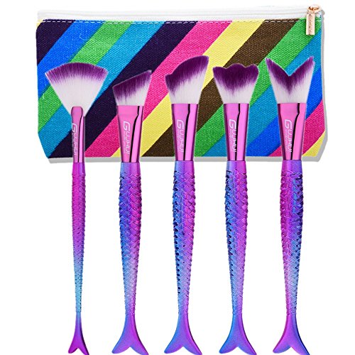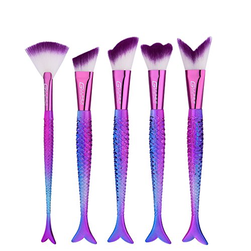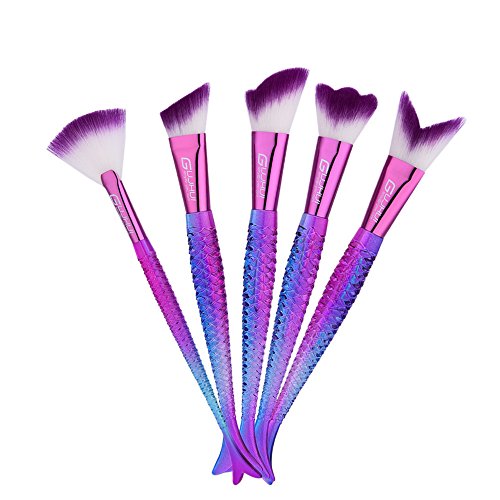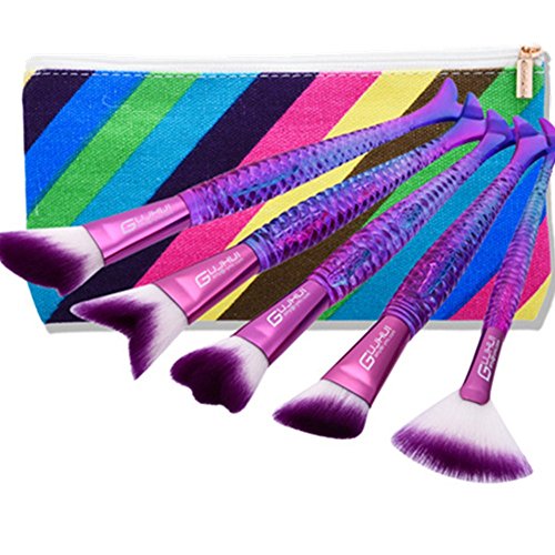 Makeup Brush Set tools,Scofieldly 5 Pieces MakeUp Foundation Eyeshadow Brushes Cosmetic Makeup Mermaid Brush Set With Bag