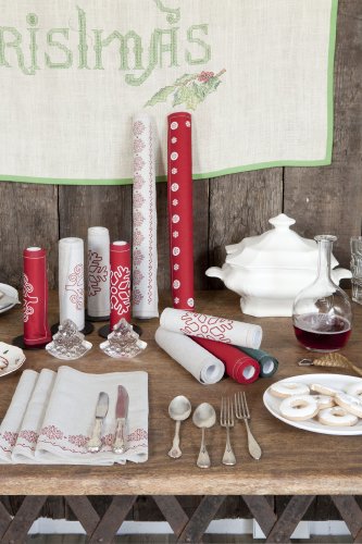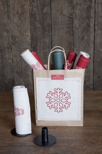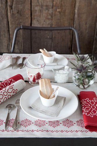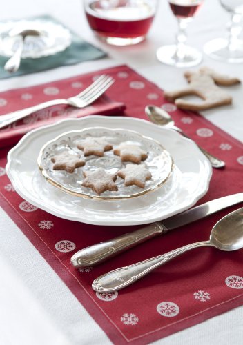 MYdrap SA20N2/701-0 Cotton Luncheon Napkin, 7.9" Length x 7.9" Width, Red Snowflake (10 Rolls of 20)