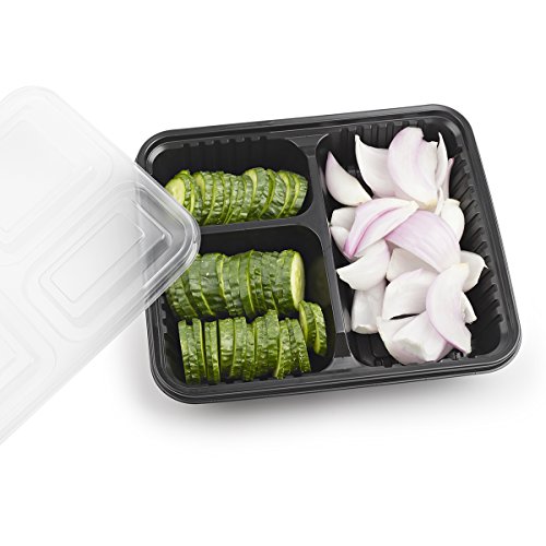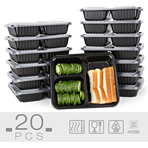 Glotoch 34 Ounces Meal Prep Containers Set with Lid for Meal Prep and Portion Control in 3 Compartment Bento Box - Microwaveable, Freezer & Dishwasher Safe, Pack of 20