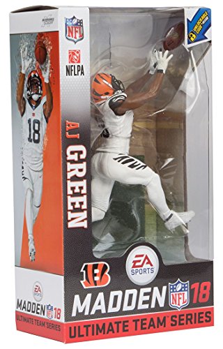 -. Binding : Toy -. Brand : McFarlane -. Color : White -. Department : unisex -. EAN : 0787926757224 -. Feature : Included with the new ea sports madden NFL 18 ultimate team action figures will be a code redeemable for 7 pro packs that will help madden NFL ultimate team players ignite their Squad / Aj green is featured in the team's white color Rush uniform / Jersey color may vary as rare alternate version figure features green in the team's all black uniform / Figure stands approximately 7 inches tall / Figure is featured in window box collector packaging and includes a detailed base -. IsAdultProduct : 0 -. Label : McFarlane Toys -. Manufacturer : McFarlane Toys -. Model : 75722-4 -. MPN : 75722-4 -. NumberOfItems : 1 -. PackageQuantity : 1 -. PartNumber : 75722-4 -. ProductGroup : Toy -. ProductTypeName : TOYS_AND_GAMES -. Publisher : McFarlane Toys -. Studio : McFarlane Toys -. Title : McFarlane Toys EA Sports Madden NFL 18 Ultimate Team Series 1 AJ Green Cincinnati Bengals Action Figure -. UPC : 787926757224 -. Warranty : No Warranty