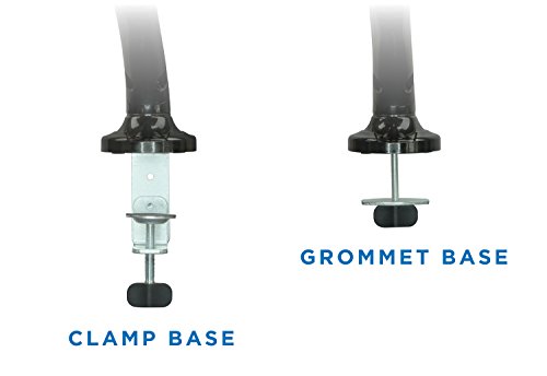 DESK MOUNT - The modular base design comes with a C-clamp that can also be used as a grommet. This monitor stand can be mounted on tables up to 3.3 inches thick. Arms come with clips for cable management.