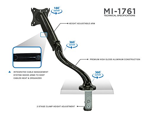 HEIGHT ADJUSTABLE - Gas Spring arm provides counterbalance for perfect monitor height adjustment.