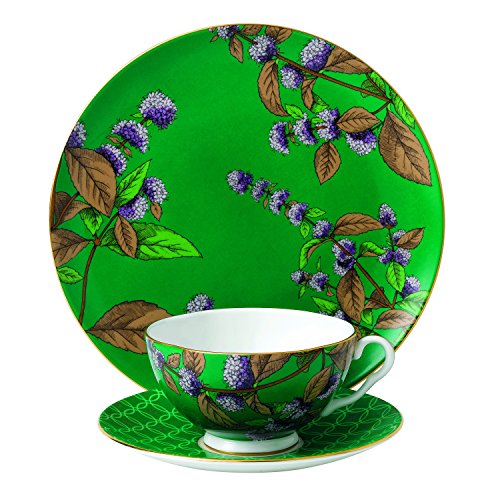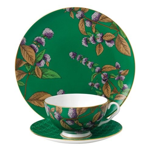 Studio : Wedgwood Publisher : Wedgwood Binding : Kitchen Product Description Bringing together a complete tea concept for the first time, the Tea Garden collection features elegant tea ware and accessories, as well as four different blends of teas and fruit infusions. Combining vibrant colors and stylized florals inspired by Wedgwood's design archive, the tea ware complements each of the delicious tea blends. This 3-piece set takes design inspiration from the flavor of Wedgwood's own green and mint tea and includes a teacup, saucer and plate. 0