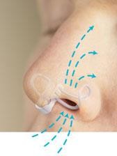 筒状ではなく線状なので、鼻腔内での接触面がとても少なく、鼻孔の自然なフィルターシステム(鼻毛の働き)を妨げません。鼻毛はホコリ等が上気道内に入り込むのを防ぎ、温度・湿度を適度に保ち、吸込む空気の速度を落とし、とても役立っています。当具は鼻毛を覆わないので、それが可能です。 |