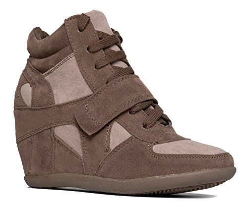 -. Title : Breckelle's METRO-01W Women's Round Toe Lace Up Wedge Sneakers, Black, 10