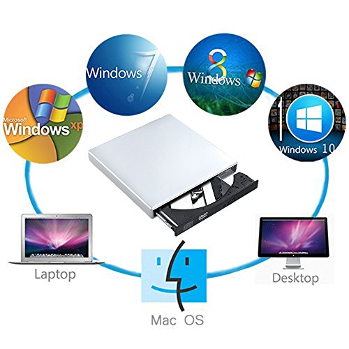 Blingco External CD Drive,Slim External CD-RW Drive CD Burner DVD-R Combo USB Player Writer for Notebook PC Desktop Laptop Computer, Sliver