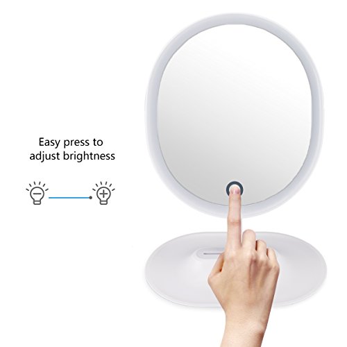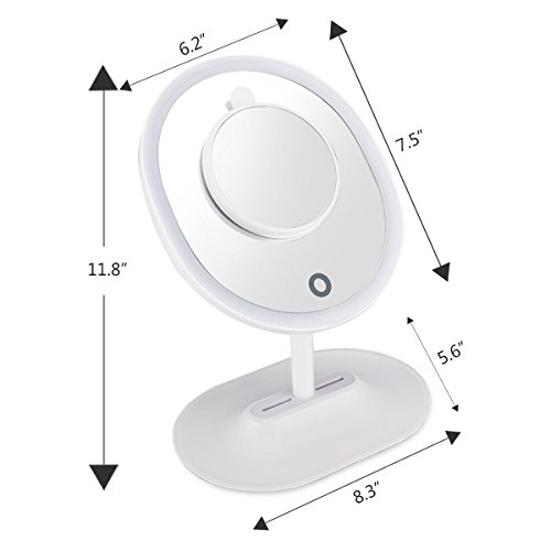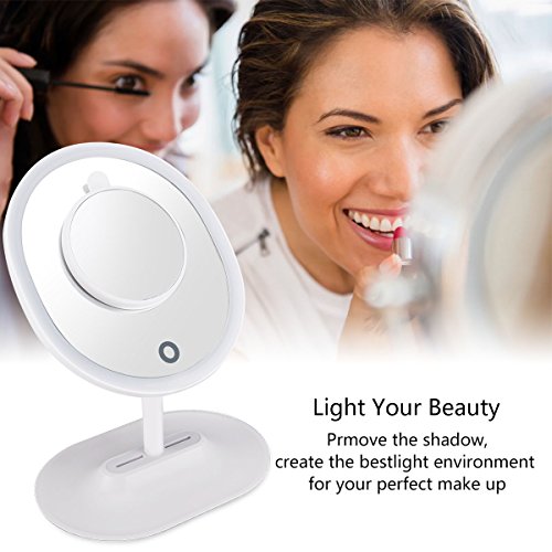 LED Lighted Makeup Mirror with 1 X 5X magnifying mirror ,Oval Shaped Touch Screen with built in...