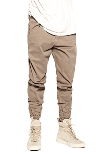 -. Feature : Slim jogger fit with cropped 27" inseam / Elasticized hem / Zip fly with button closure / 5 pockets styling / 98% cotton, 2% spandex