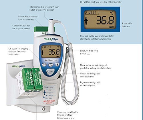 Welch Allyn SureTemp Plus 692 Electronic Thermometer with Wall Mount and 9ft Oral Probe