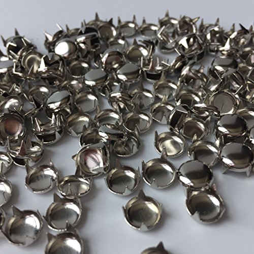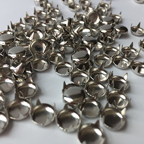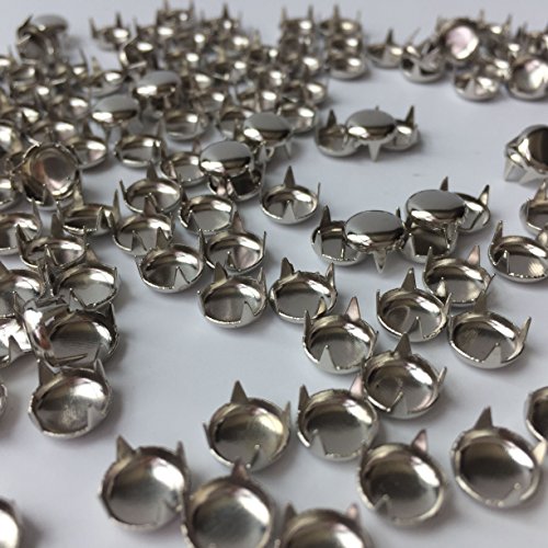 Great for biker or punk gear, belts, leather jackets and wristbands, dog collars, bike ornaments, etc. Fit standard dies, or are easily set by hand on leather and fabrics: cut small slit, insert prongs and bend over