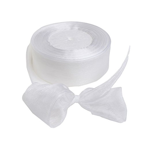 Pengxiaomei White Shimmer Sheer Organza Ribbon 1-1/2"X 50Yd Fabric Ribbons Roll for Wedding Decorating