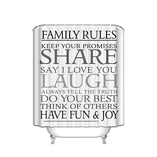 YEHO Art House Rules Family love Large Shower curtain quotes decals home lettering art sayings Fabric Shower Curtain Bathroom Decor Sets with Hooks 72X84 inches