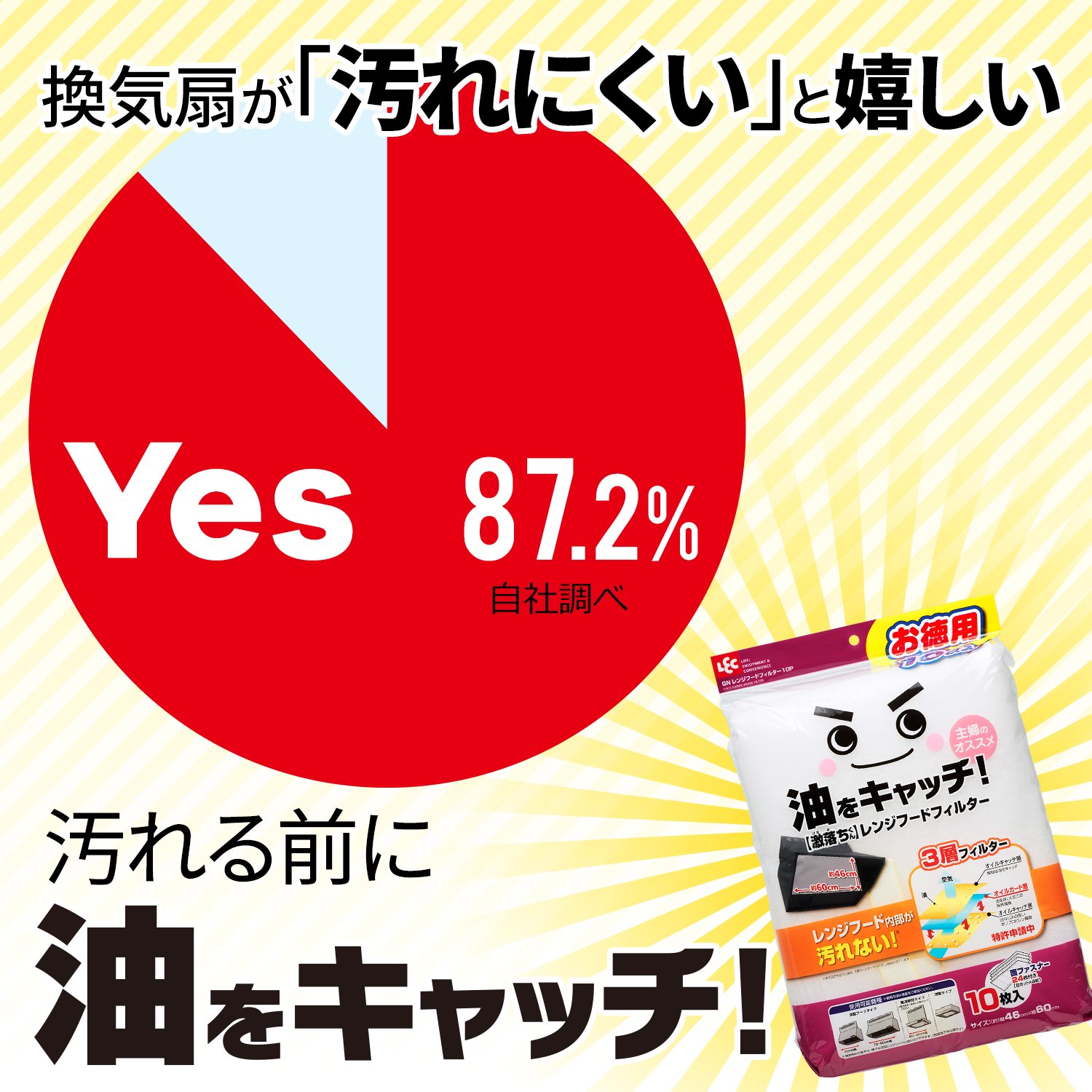 ● Japan first! Patent pending! Because it catches the oil with a special 3 layer filter only for Rec, so the inside of the range hood will not get dirty!