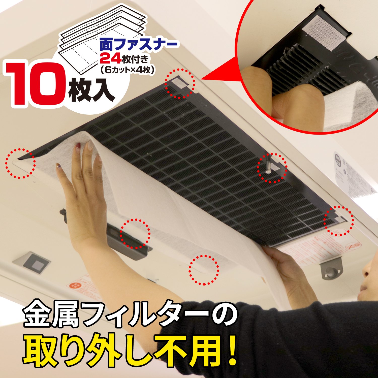 ● You can easily install with a hook and loop fastener without removing the metal filter.